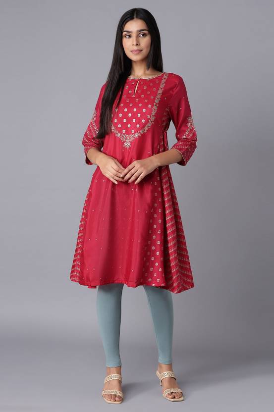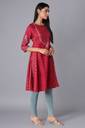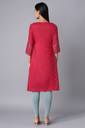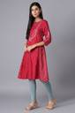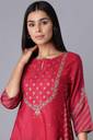 Persian red shantung kurta in keyhole neckline and three-quarter sleeves. It also features embroidery on yoke, dori on