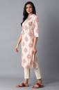 W for Woman Beige Geometric Printed Straight Rayon Kurta