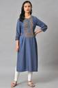 Women Solid Viscose Rayon A-line Kurta (Blue)