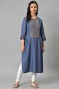 Crafted In Premium Fabric, This Contemporary Kurta Is A Perfect Pick For A Light Summer Day Occasion Look. It Is Embellished With Embroidery On Yoke And Has Lace Detailing.