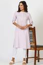 Women Solid Cotton Blend Straight Kurta (Purple)