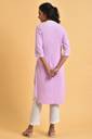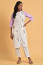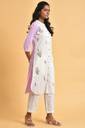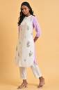 White and light purple kurta with mandarin collar and placket. It has multicoloured floral embroidery.