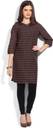 W Women Striped Straight Kurta (Brown)