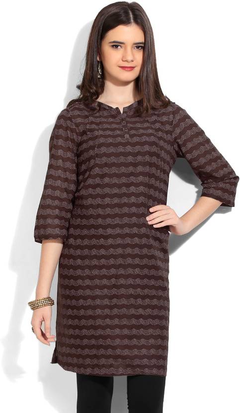 Women Striped Cotton Blend Straight Kurta (Brown)