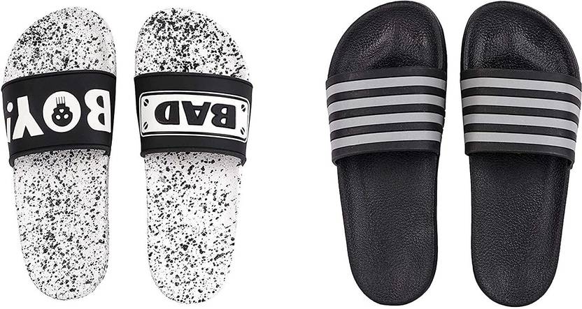 Men Slides (White, Black , 10)