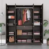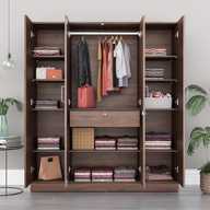 Wakefit Gingham Engineered Wood 4 Door Wardrobe (Finish Color - Dark Brown, Knock Down)