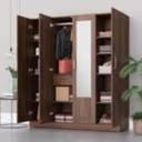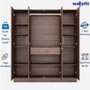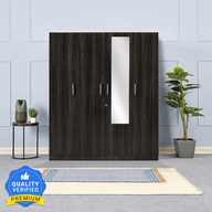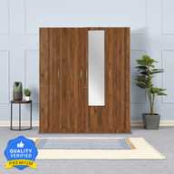 Wakefit Gingham Engineered Wood 4 Door Wardrobe (Finish Color - Columbian Walnut with Drawer, Mirror Included, Knock Down)