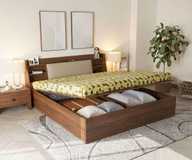 Wakefit Leo Engineered Wood King Hydraulic Bed (Finish Color - Bed (Columbian Walnut), Upholstery (Omega Pearl), Hydraulic Storage, Delivery Condition - Knock Down)