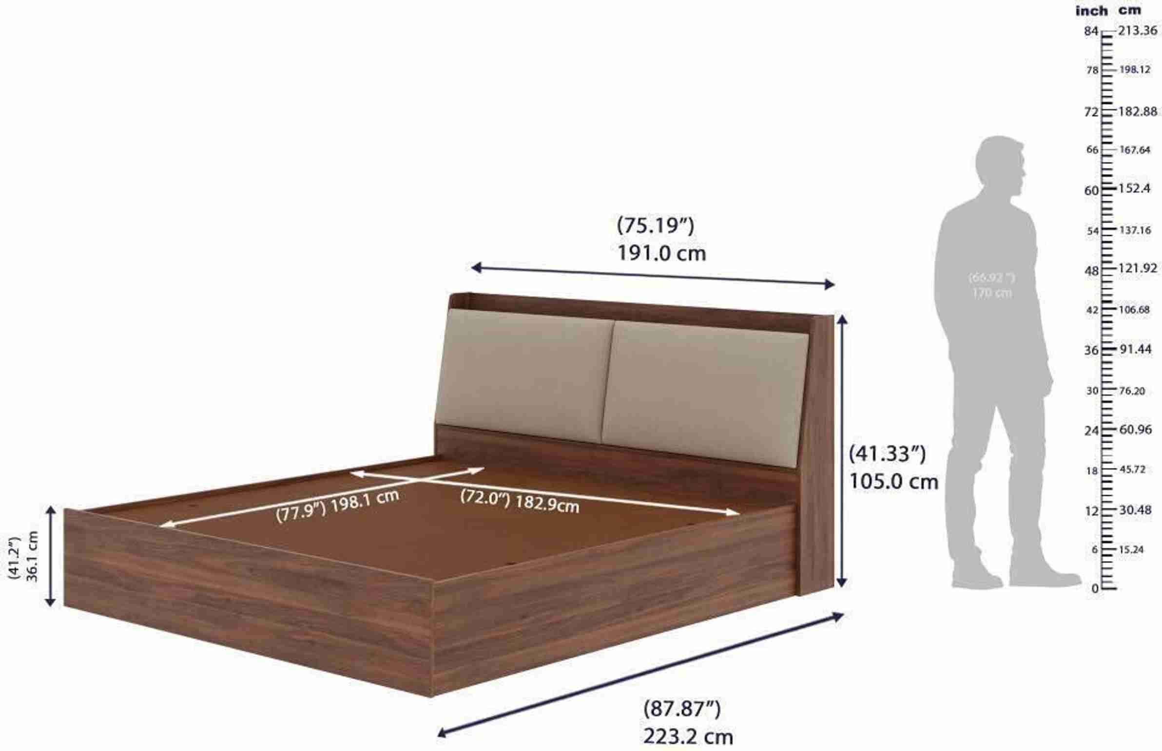 Mars Engineered Wood King Box Bed, 86.6142 cm x 190 cm (2.84 ft x 6.23 ft) (Finish Color - Bed (Columbian Walnut), Uphol...