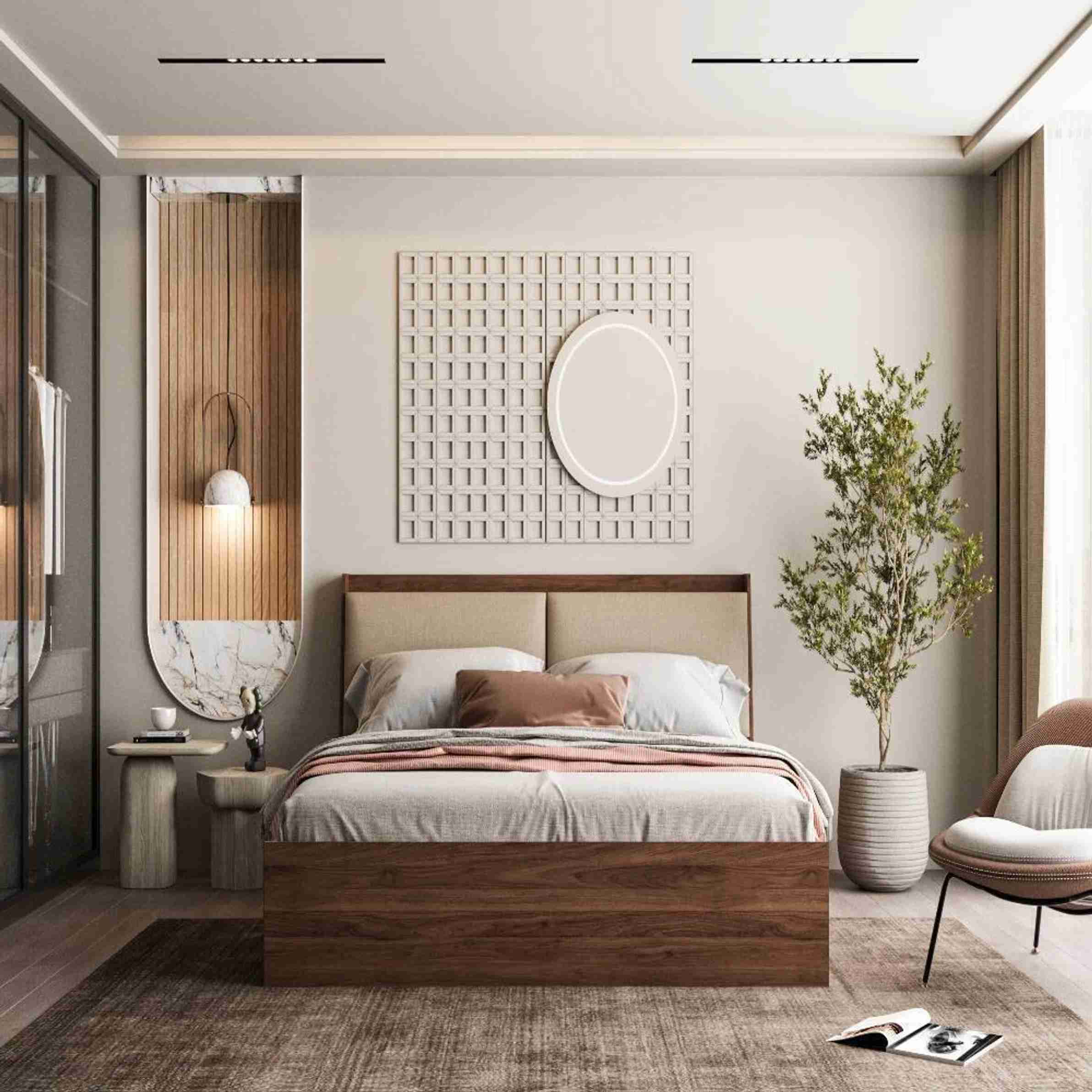 Bed (Columbian Walnut), Upholstery (Omega Pearl)