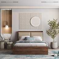 Wakefit Mars Engineered Wood Queen Box Bed (Finish Color - Bed (Columbian Walnut), Upholstery (Omega Grey), Delivery Condition - Knock Down)