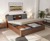 Wakefit Orion Engineered Wood King Hydraulic Bed (Finish Color - Bed (Columbian Walnut), Upholstery (Omega Grey), Hydraulic Storage, Delivery Condition - Knock Down)