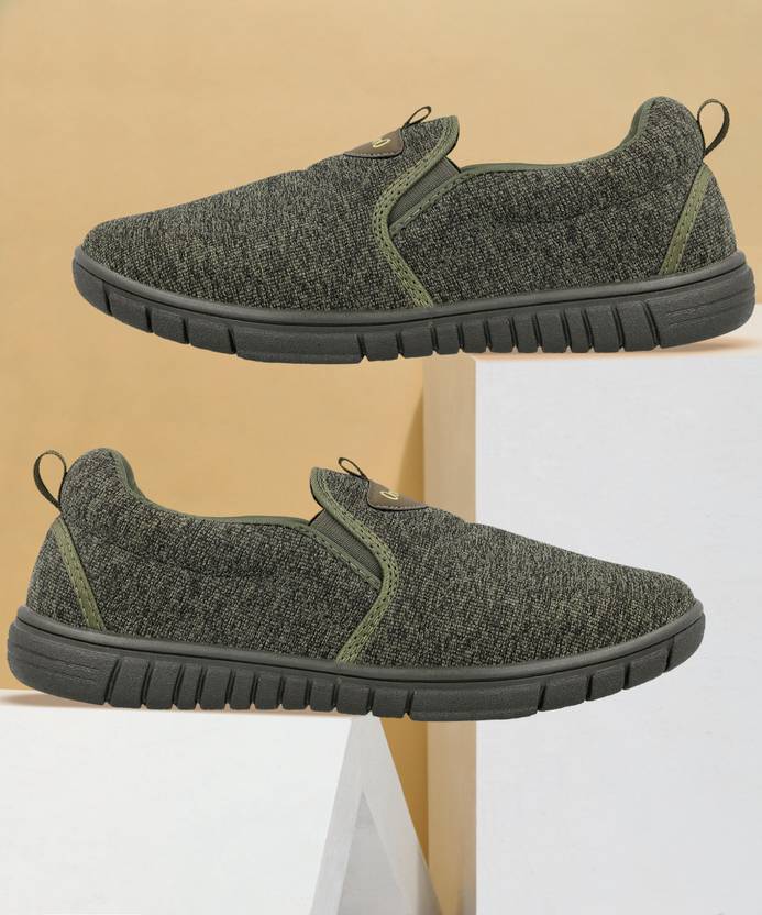 WALKAROO Slip On Sneakers For Men (Olive , 7)