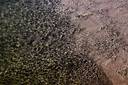 Mysterious water pattern art-work, printed on paper, with texture of sand and soil giving an abstract décor for your wall.
