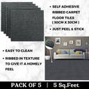 The carpet material used for these tiles is ribbed, providing a plush and comfortable underfoot experience. This ribbed texture not only feels soft but also adds a touch of elegance to your space. It's ideal for creating a cosy and inviting atmosphere in any room. The plushness of the carpet material also offers additional insulation, helping to keep the room warm and comfortable, making these tiles a practical and comfortable flooring choice.