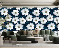walldecoree 300 cm blue flower botanical wallpaper for walls Self Adhesive Sticker (Pack of 1)