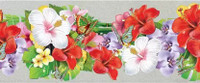WALLDESIGN 609.6 cm Orchid Hibiscus Flowers With Butterflies Wall Border - 5.25 inch width by 20 ft length - Extra Large Self Adhesive Sticker (Pack of 1)
