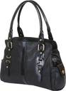 Twilight ladies handbag. Features : An elegant bag ,ideal for workplaces with lots of storage and pockets yet compact in nature. The bag is made in creased two tone elephant leatherite with a artificial patent leather combination. The bag has two top openable 11 inch main zipper pockets. It has a 7 inch flat zipper pocket in one compartment and a 4 inch flat open pocket and a 2.5 inch gusset mobile pocket in the other compartment. The bag has a 6 inch flat zipper pocket on its back for easy access to smaller essentials. It also has two pockets on its sides secured by a magnetic button. The bag has two 21 inch long handles for shoulder carriage ,with a carry depth of 8 inches. Size of the bag ? 14.5 x 4.5 x 9 (with handle 17) inches. Weight of the bag ? 800 gms. After packing details : packing dimension ? 15 x 5 x 10 inches // 38 x 13 x 26 cms. Weight of the product : 1 kg. Vol 3 kg. Available colours : Black.