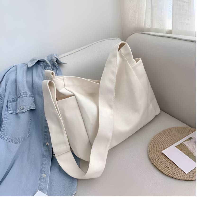 Canvas Tote Bag With Adjustable Strap,Zipper Closure And Side Two Pocket