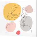 Wallfe Freehand Women Face Backside Line Pine Wood Square Shape Wall ModernArt Painting Canvas 16 inch x 16 inch Painting (With Frame)
