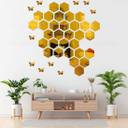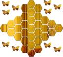 wallmarvel 12 cm 28 Hexagon 10 Butterfly Golden Self Adhesive Sticker (Pack of 38) Self Adhesive Sticker (Pack of 1)