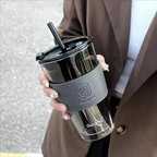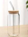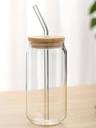 Wallsenterprise Wooden Lid Mojito Tea Glass Can with Straw Glass Coffee Glass Coffee Mug (540 ml)