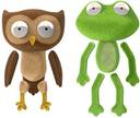 Interchangeable Ears, Arms & Legs|All Chimeras Stuffed Animals are compatible, so cross the bat and elephant set with the frog and owl set and more.|Box dimensions: 14" x 6.5" x 6.5"|In the Box: Two Stuffed Animals with Interchangeable Parts. Owl measures 9-1/2" H x 6"L x 3"W.Frog measures 9"H x 6"L x 3" W|Note the packaging photo shows the Monkey & Bunny animals only for the purposes of showing what the packaging looks like. For this item you will received a Owl and Frog in the box.