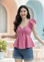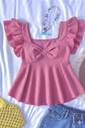 Tops Nova Casual Puff Sleeves Solid Women Pink Top
