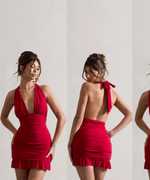 WANQUILA Women Bodycon Red Above Knee/Mid Thigh Length Dress