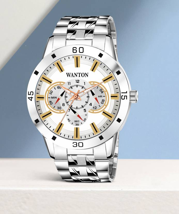 WANTON stainless steel chain shiny attractive white Chrono stylish dial for Analog Watch - For Boys