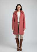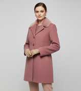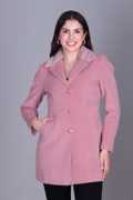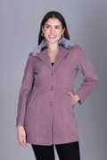 Women’s Solid Pink Winter Blazer with Faux Fur Collar