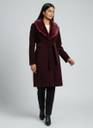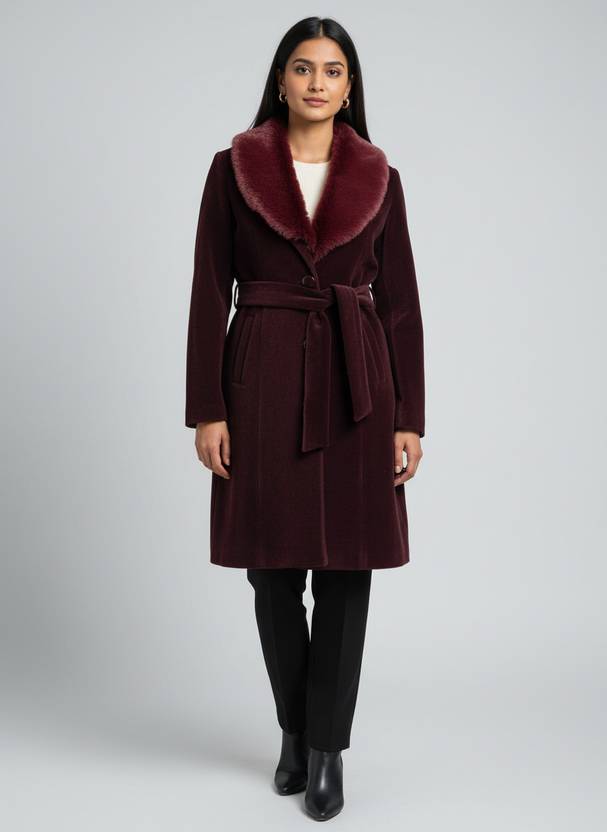 Women’s Solid Wine trench Coat with Faux Fur Collar