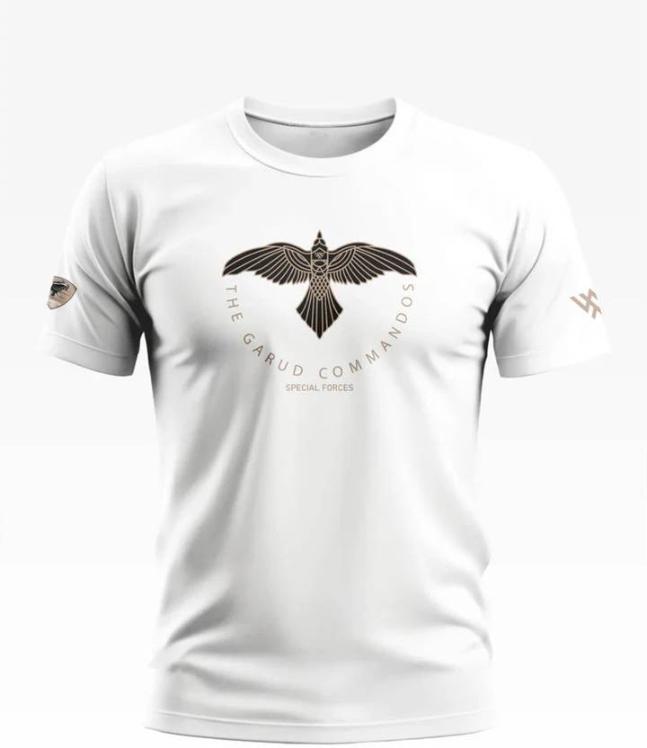 Warriorworld Men Printed Round Neck Pure Cotton White T-Shirt