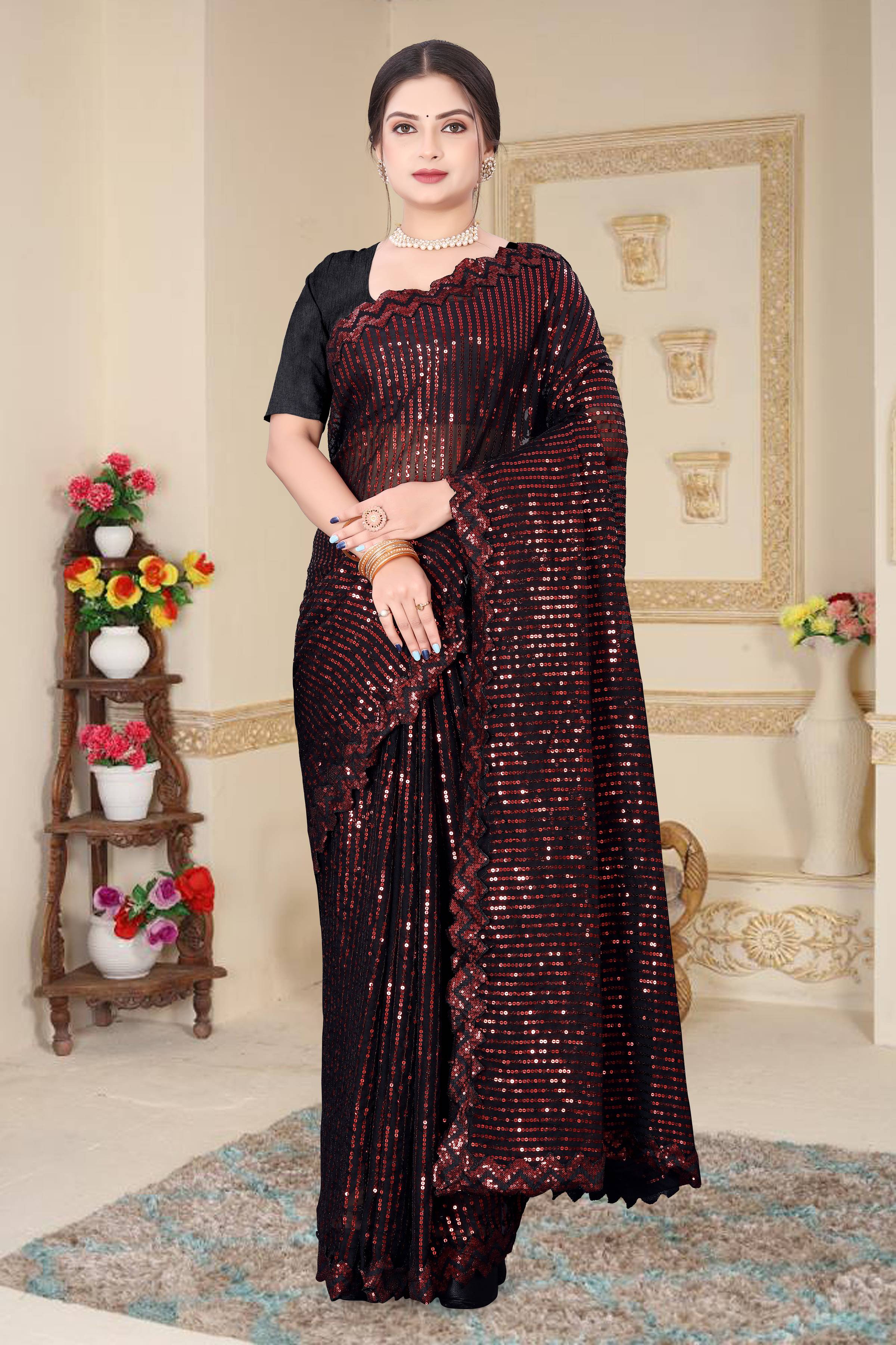 NEXORA Embellished Bollywood Georgette Saree (Maroon)