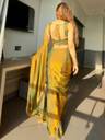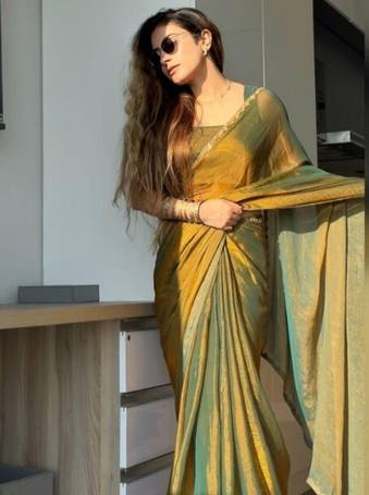 Add a touch of traditional elegance to your ethnic collection with this vibrant yellow saree. Designed with delicate embroidery on the borders and small floral motifs, this saree beautifully blends simplicity with charm. The contrasting deep purple blouse with intricate embroidery enhances its overall appeal, making it perfect for festivals, family functions, and special occasions. Crafted from soft, lightweight fabric, it ensures comfort and easy draping throughout the day. Pair it with minimal jewelry for a graceful, classic look