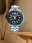 High quality stainless steel case make the watch look luxury, Made of high qulity stainless steel case, this watch case is sturdy and not easy to fade, making you the shining star in all occasions.The luxurious fashion design exterior suits every business man.Wearing it could attend all business occasions. Stainless steel watch band and double-locking-fold-over-clasp. Comfortable to wear and easy to operate. Japanese movement: Provides precise and accurate time keeping. Minerals hardened mirror: Provides high transparency and durability which enables you to see time clearly with scratch-resistance ability. Stainless Steel Strap: Elegant and comfortable to wear.