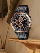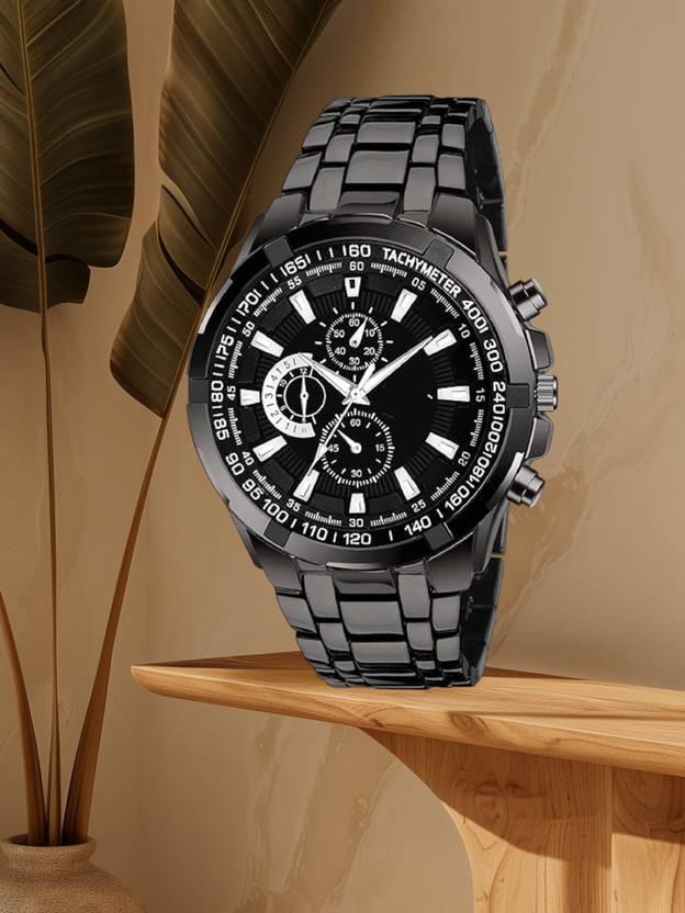 Chronographs, Analog big dials, Black Dial and Strap, Metal Strap