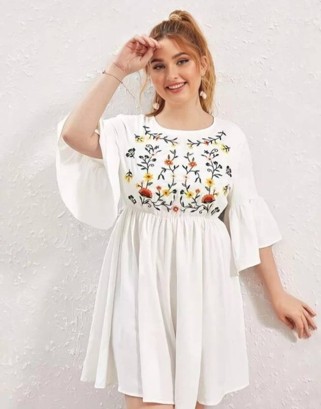 Women A-line White Above Knee/Mid Thigh Length Dress