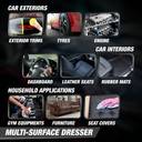 Multi-Surface Dresser: Safe and effective on a variety of surfaces including car interiors, exteriors, and home appliances, perfect for plastic, vinyl, rubber, and leather. Some examples Car Polish, Tyre Polish, Engine Shiner, Exterior Trim Shiner, Car Rubber Mat Shiner, Gym Equipment Shiner.