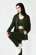 Solid lightweight sporty jacket with 4 Way streachable lycra fabric, has a mock collar, 2 pockets ,has a zip closure, long sleeves, straight hemline, without lining engineered with dry fit