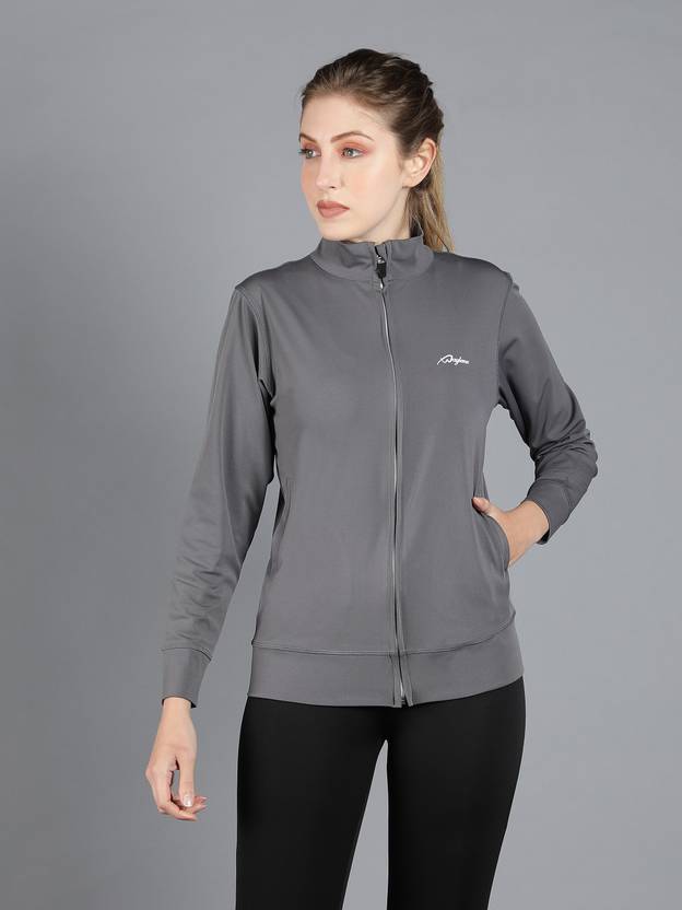 Solid lightweight sporty jacket with 4 Way streachable lycra fabric, has a mock collar, 2 pockets ,has a zip closure, long sleeves, straight hemline, without lining engineered with dry fit