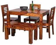 WayWood Sheesham Solid Wood 4 Seater Dining Table With 4 Chairs Dining Room Furniture Solid Wood 4 Seater Dining Set (Finish Color -Brown, DIY(Do-It-Yourself))