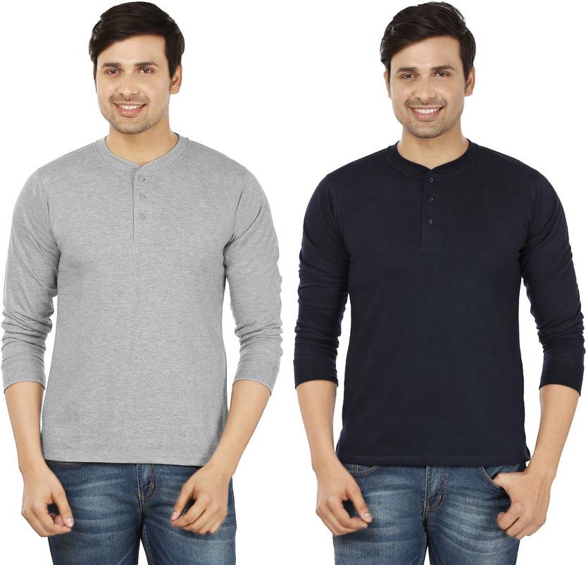 weardo Solid Men Henley Neck Blue, Grey T-Shirt