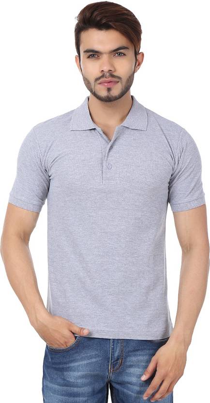 weardo Solid Men Polo Neck Grey T-Shirt