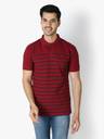 Men Striped Polo Neck Cotton Blend Maroon T-Shirt
