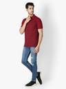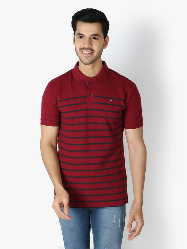 weardo Striped Men Polo Neck Maroon T-Shirt