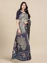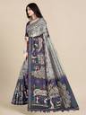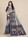 Elevate your ethnic wardrobe with this stunning Warli cotton tussar silk saree, a blend of elegance and heritage. Adorned with intricate Warli artwork inspired by traditional tribal art, this saree exudes a timeless charm. The vibrant navy-blue base is accentuated with detailed motifs of peacocks, trees, and human figures depicting scenes of nature and celebration. Immerse yourself in timeless tradition with this exquisite Warli cotton tussar silk saree. A perfect combination of artistry and comfort, this saree features intricate Warli tribal patterns that narrate stories of village life, nature, and festivities. Crafted from premium tussar silk blended with cotton, this saree is lightweight, breathable, and drapes beautifully, making it a must-have for every occasion. Whether you're attending a wedding, a festival, or a cultural evening, this saree is sure to make a statement.