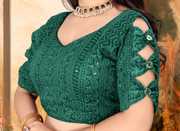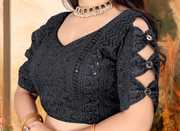 New Blouse Hot Beautiful Fancy Trending Georgette Round Neck party wear Chikankari Lakhnavi New Wedding Blouse For Ceremony Blouses Blouse Piece Stitched Blouse Latest Designer Embroidery Georgette Blouse For Women (Sizes 30 To 36) Puff Sleeve Modern Women Georgette Blouse With Embroidery And Sequence Work (Size From 30 To 36)