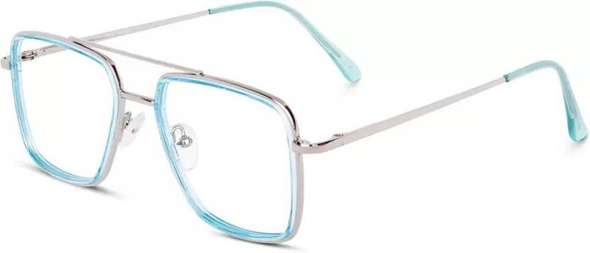 Unisex Adult Square Sunglasses Silver Frame, Transparent Lens. (Free Size)
