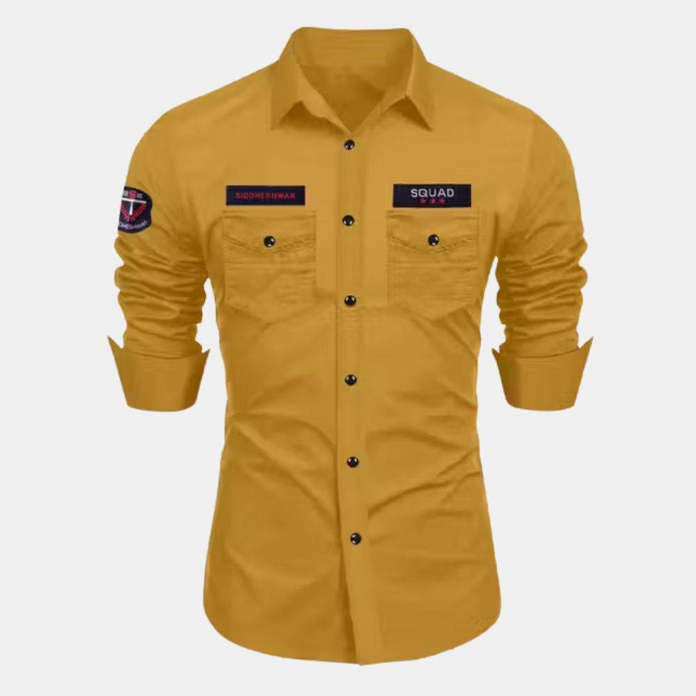 Elevate your casual wardrobe with this premium black full sleeve casual shirt. Designed with a modern slim fit, this shirt features stylish embroidered patches, dual flap chest pockets, and a sleek button-down closure. Perfect for casual outings, parties, and everyday wear, this shirt blends comfort with a rugged fashion appeal. Pair it with jeans, trousers, or cargo pants for a trendy look.